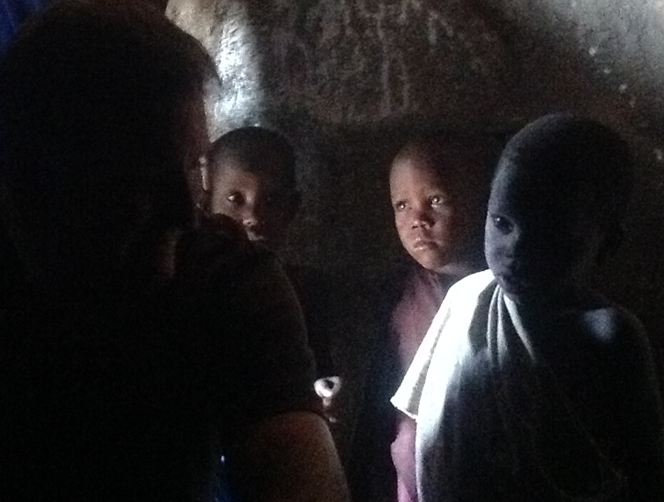 Tim and kids in a Maasai hut.